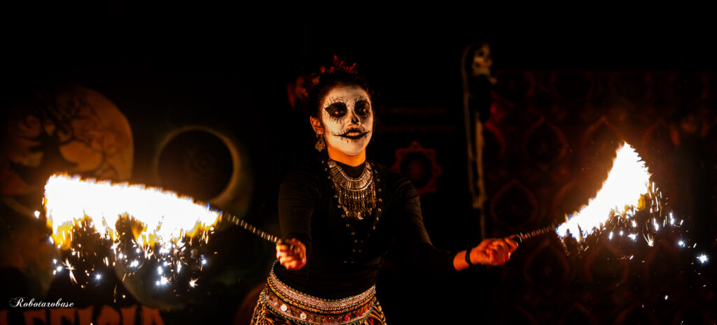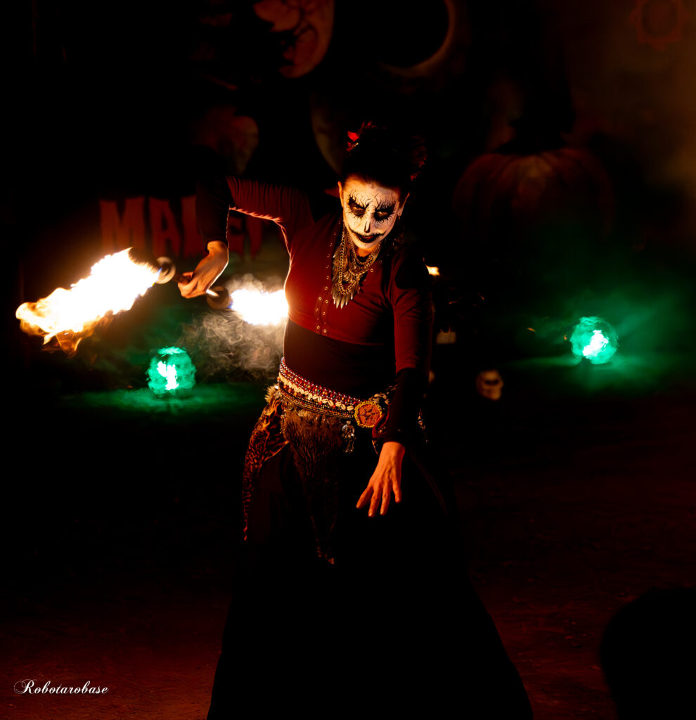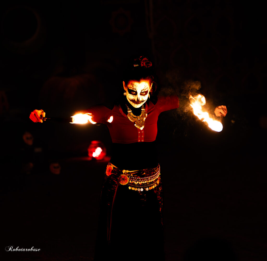 Nous vous avons concocté un show pyrotechniques et lumineux terrifiant mêlant manipulation de feu, chorégraphies synchronisées, apparition de démon dans les airs, jeu de scène, de fumée, de lumière, de flammes géantes et d’artifice ; un cocktail extraordinaire à en frissonner de plaisir !